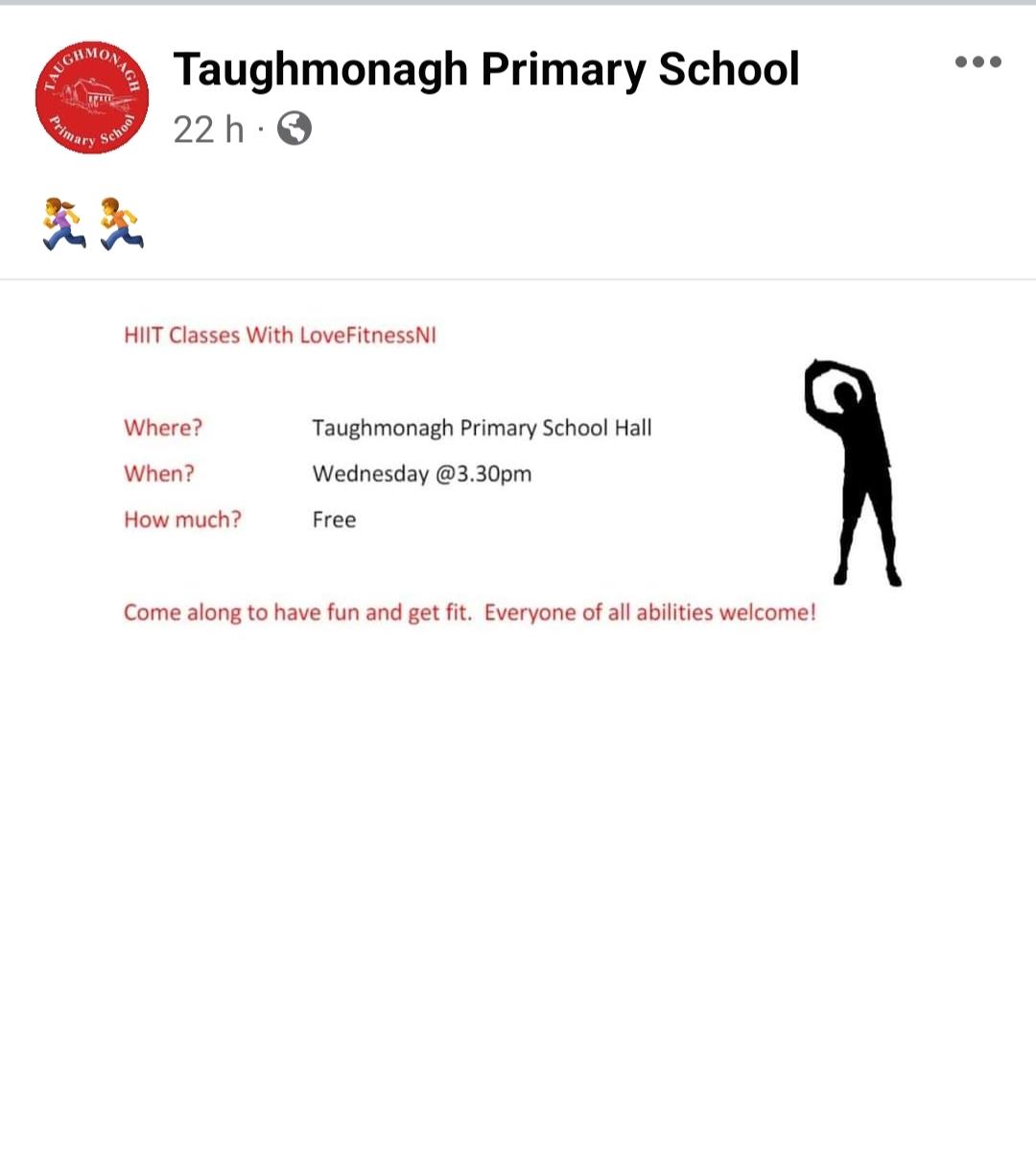 Taughmonagh Primary School assembly hall at 3.30pm!